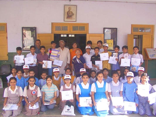 In the beginning of 2004 painting events entitled Mahatma Gandhi - As I See Him took place in Lucknow, Ahmedabad and Rajkot. Over 300 students participated with a lot of enthusiasm. Many pictures impress due to their technical quality and expression. The pictures were collected by the German Embassy, New Delhi, who forwarded them to us to Germany. After scanning and registration, the pictures are now ready to be sent to educational institutions allover.