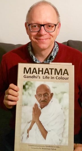 As supporter of the exhibition “Mahatma Gandhi’s Life in Colour” by GandhiServe India during the International Sarvodaya Conference at New Delhi in 2015 I’m proud and grateful to hold all the magnificent and inspiring pictures bundled in my hands.